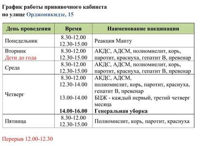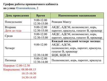 График работы кабинетов профилактических прививок График работы кабинетов профилактических прививок